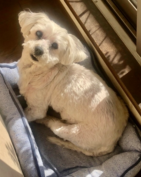 よく吠えて食いしん坊で、ちょっと留守番の間に、ココアの袋をあさって真っ黒粉まるけになってたり、クリスマスプレゼントとして用意していた机の上の高級チョコレートを食べあさって、吐きまくって、リビングがチョコだらけになってたり…みかんもスイカも…とにかく食べるの大好きでした。実家への長いドライブ帰省も一緒、海で泳いだり、知らない場所の土間で寝たりもしたね。