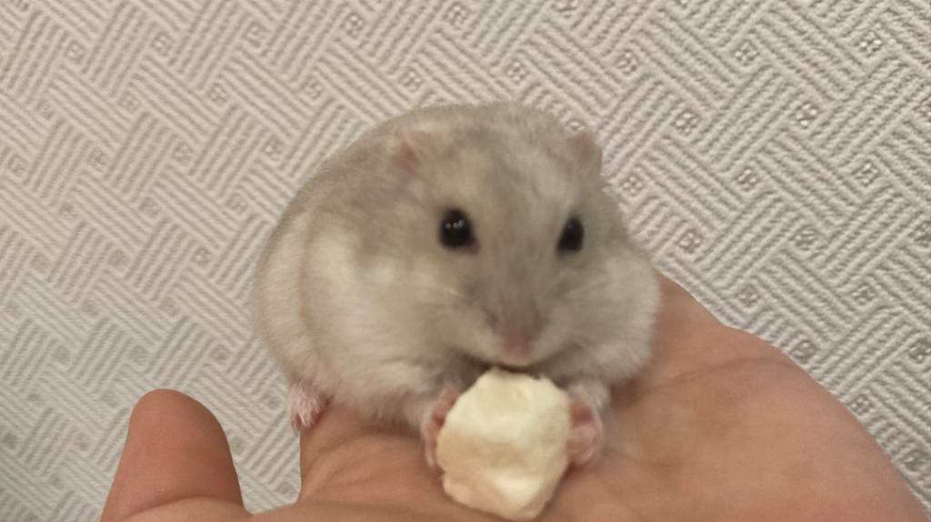 最初は、手を本気で噛んでばっかだったけど、いつのまにか美味しいおやつを手の上で安心して食べていたね。